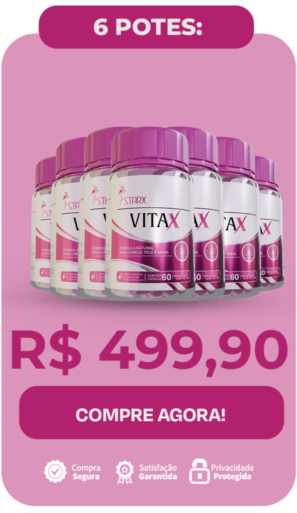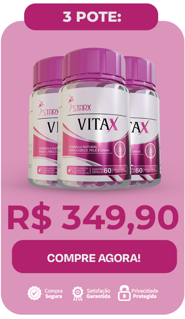 A VitaX é uma grande aliada da beleza que começa de dentro para fora. Sua fórmula foi pensada para nutrir o organismo com vitaminas essenciais que contribuem diretamente para a saúde da pele, dos cabelos e das unhas.